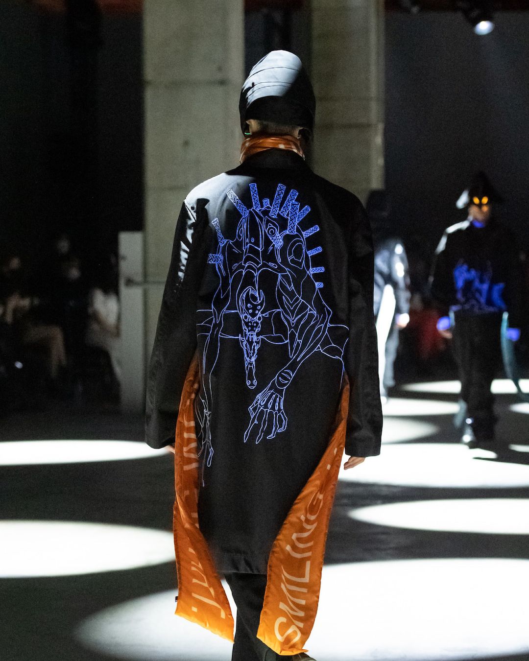Although it is a rather common practice, and quite easy, to license an anime’s image ranging from food packaging to toiletries, it is rare that one finds such deals make their way onto the runway, and even rarer that their legacy could be given the same justice as that of Undercover. Taking an outlined version of the series’ biomechanical humanoids known as EVAs, in what is referred to as a “berserk” state, Takahashi cleverly juxtaposes the print on top of what is essentially a formal windbreaker/raincoat. There are few concepts as exciting as being able to wear one’s nostalgia on their sleeve (no pun intended) whilst simultaneously maintaining an air of formality.