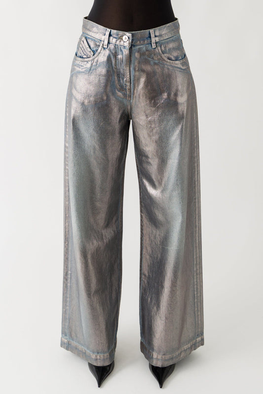 Melitta Baumeister Wide Leg Denim Pants in Green Painted Cotton Denim