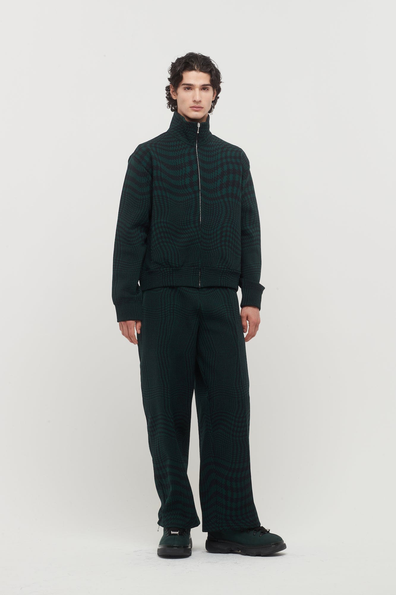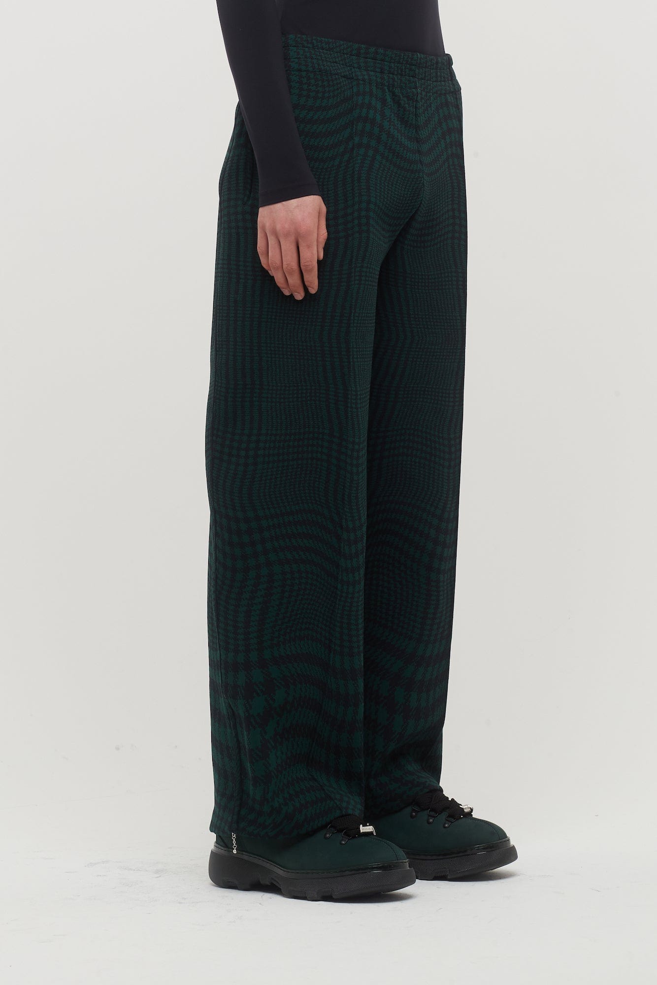 Paying homage to classic British heritage, these trousers from Daniel Lee's Resort 2024 Burberry collection are crafted from a wool blend and feature jacquard woven with a warped houndstooth pattern in hunter green.