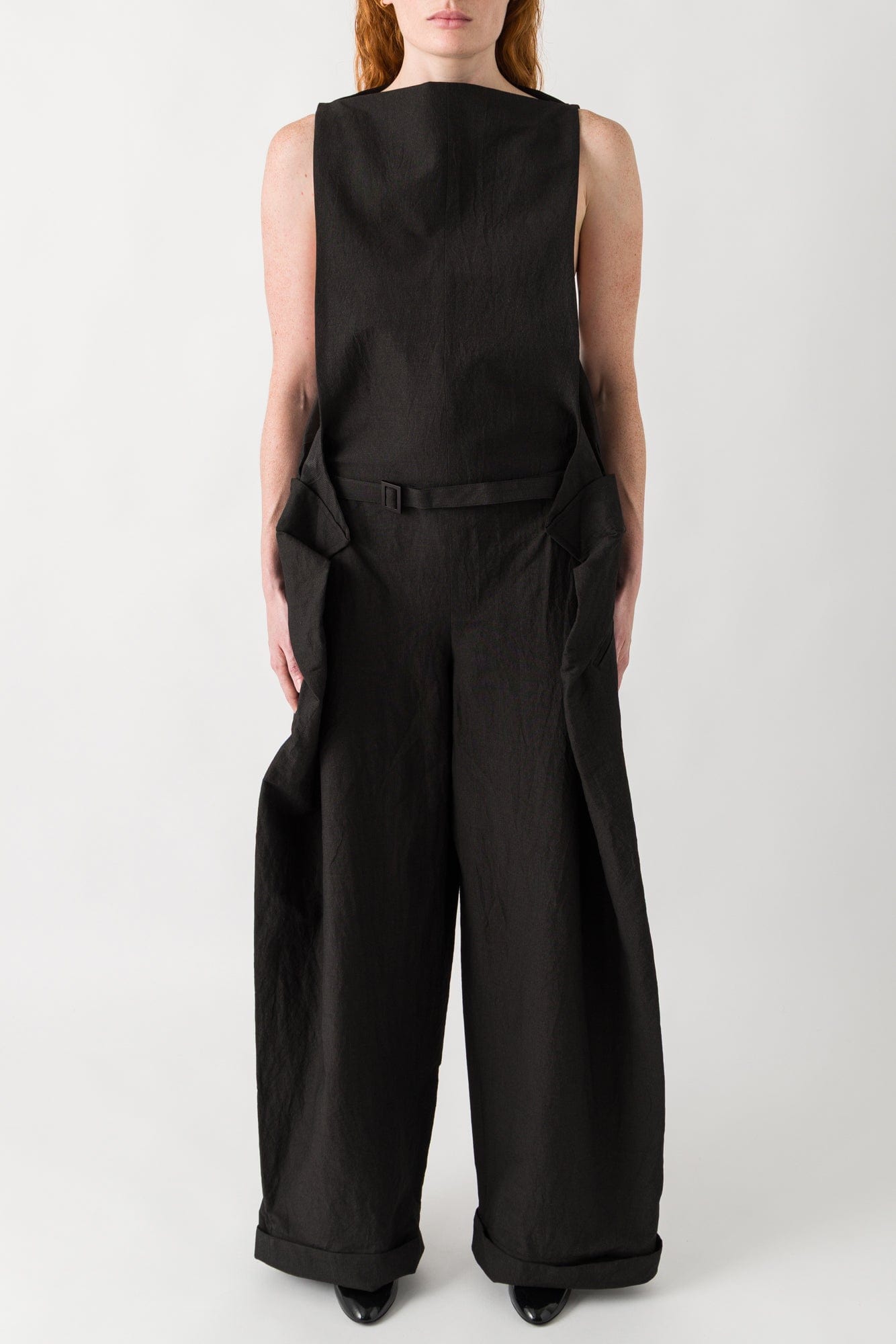 This Issey Miyake Fold to Form Jumpsuit from Spring/Summer 2025 is made from lightweight plain-woven stretch paper and rayon blend. The jumpsuit silhouette showcases the brand's innovative fabric technology in a single-piece design.