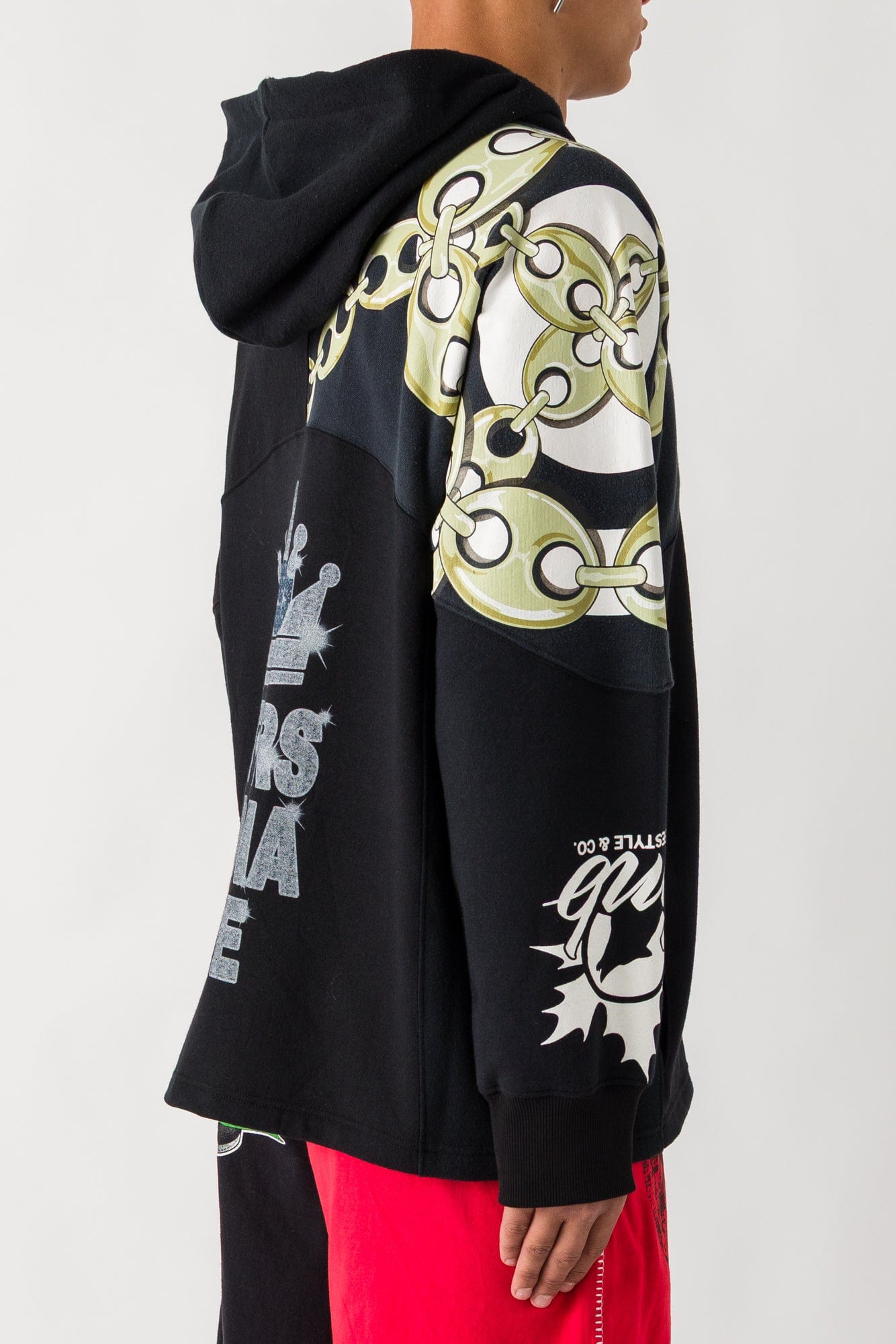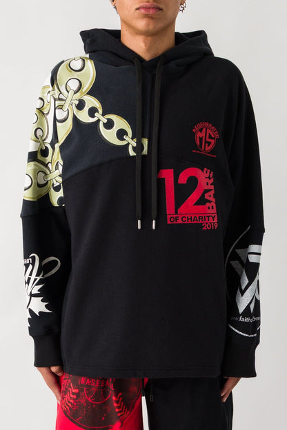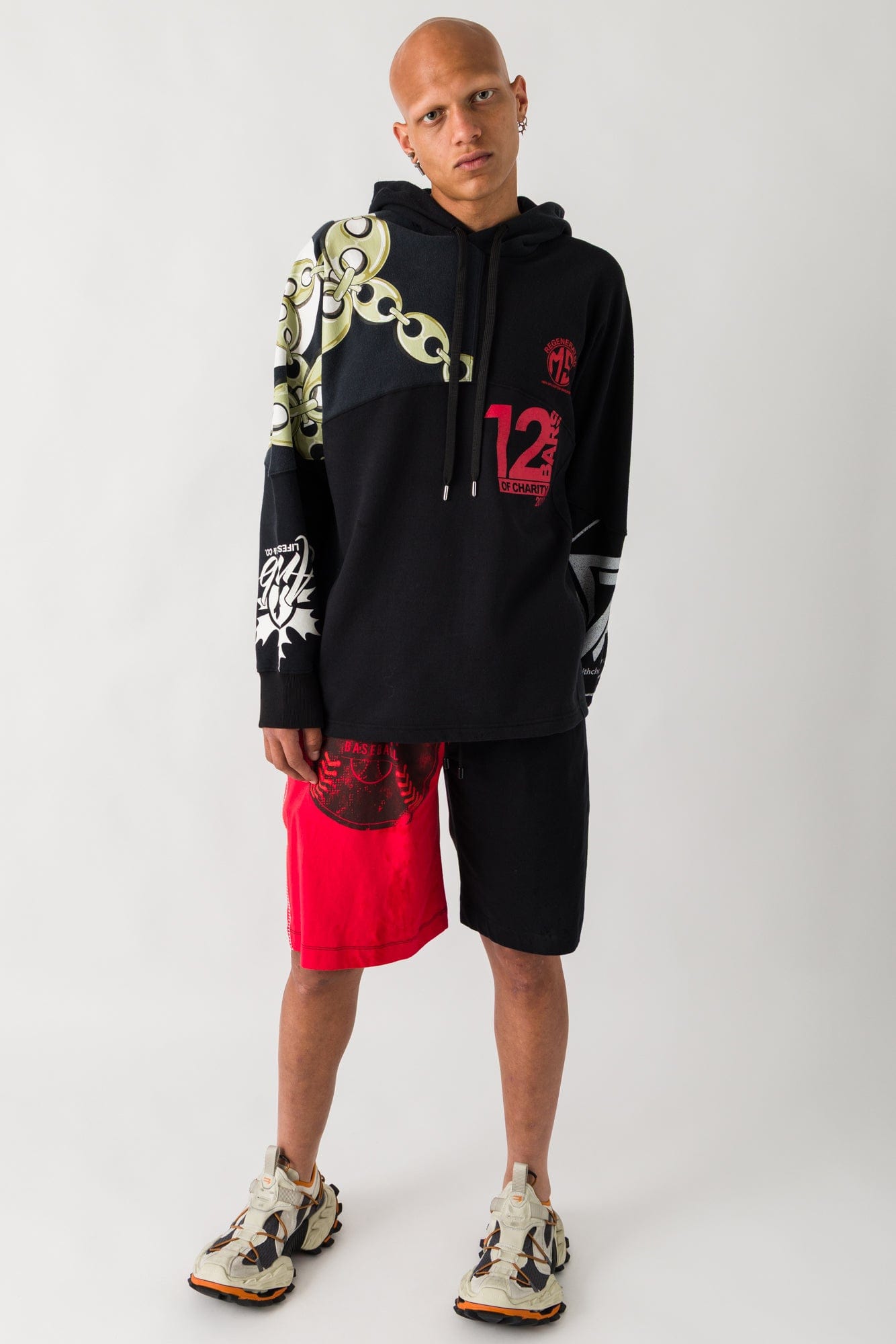 Marine Serre presents the Regenerated Graphic Sweatshirts in Black for their Fall/Winter 2025 collection. This unisex regular fit hoodie is created using sustainable upcycling methods that ensure every garment is one-of-a-kind with distinctive print details.