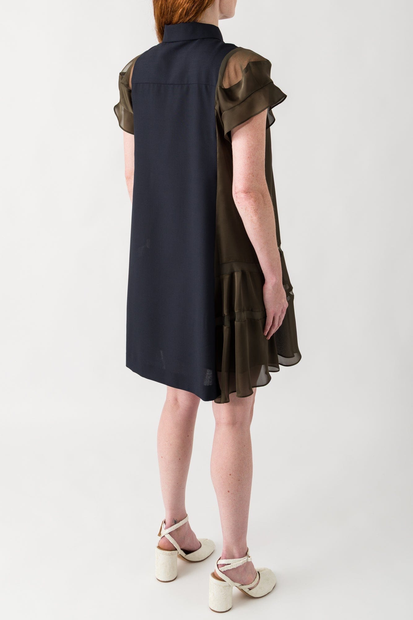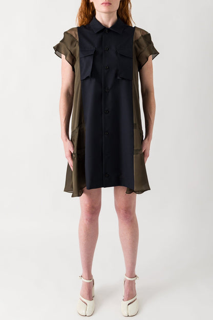 Sacai Suiting x Satin Dress in Navy and Khaki