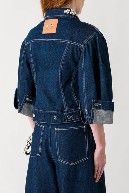 Simone Rocha Sculpted Cropped Denim Jacket with Embroidery